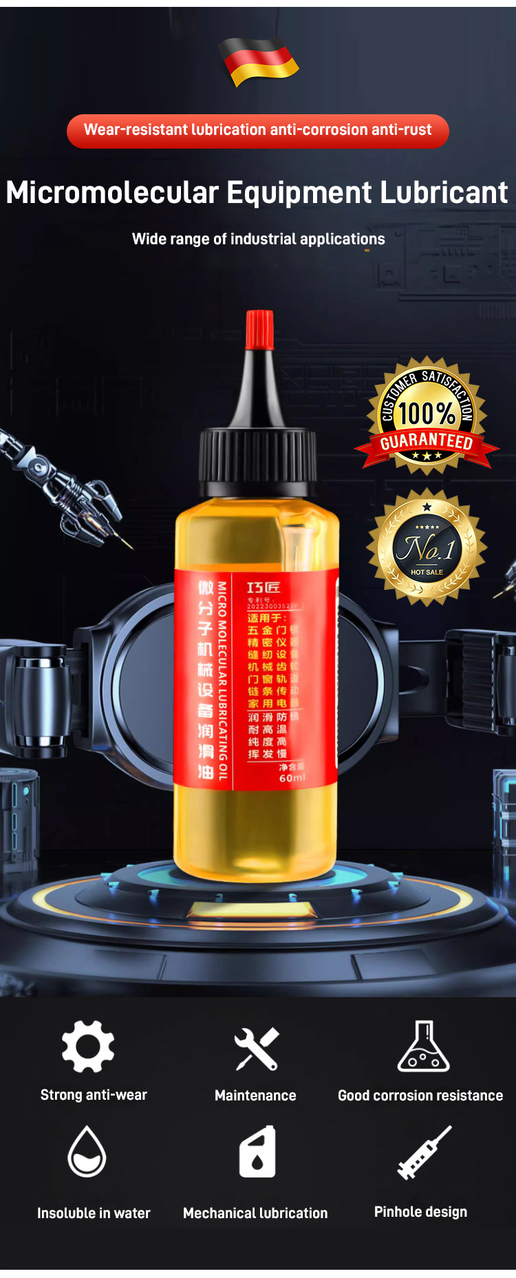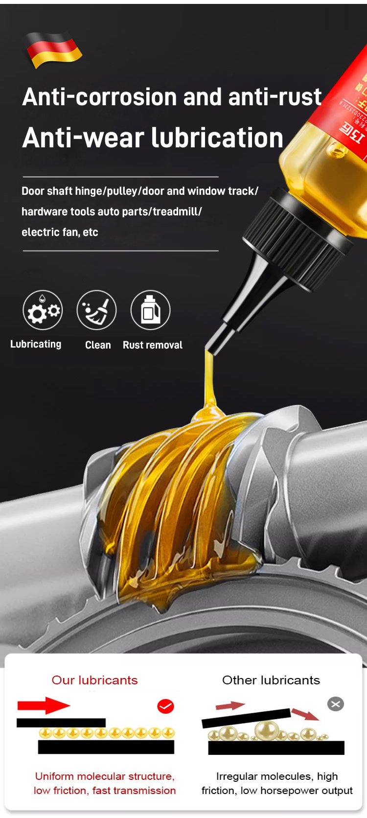 ⚙️✨ German micro-molecular lubricant - rust and corrosion resistant, resistant to high and low temperatures, reduces component wear.